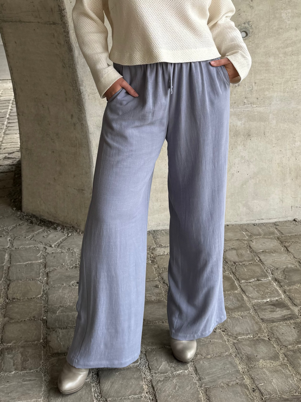 Air pants Blue stone van Mon Col brengen serene elegance naar je garderobe met de prachtige blue stone kleur en luchtige pantalon fit.