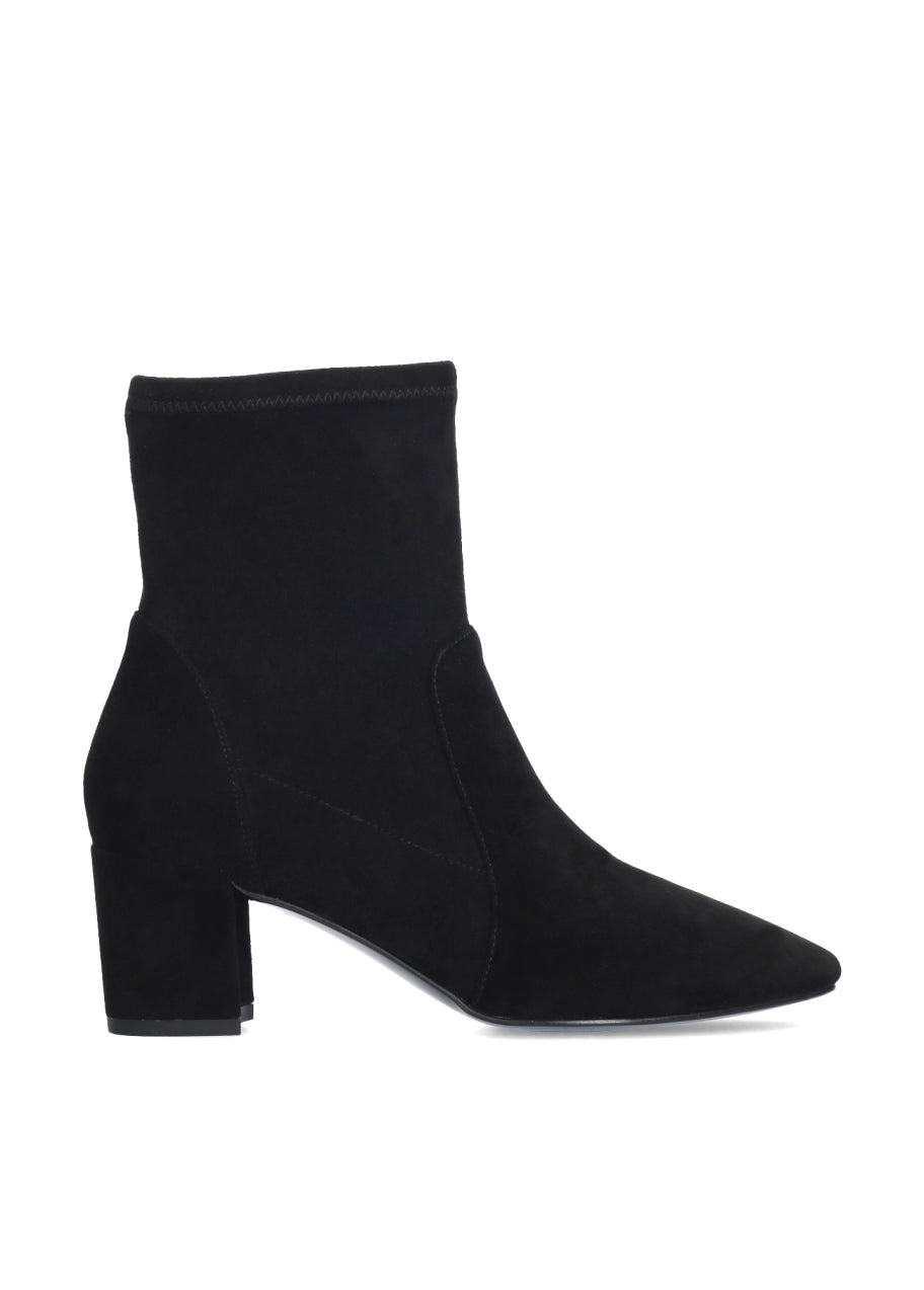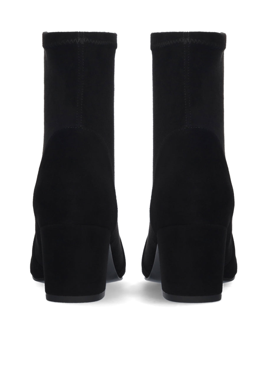 Bibi Lou dames enkellaarsjes in zwart suède met een ronde neus en een blokhak van 6 cm.