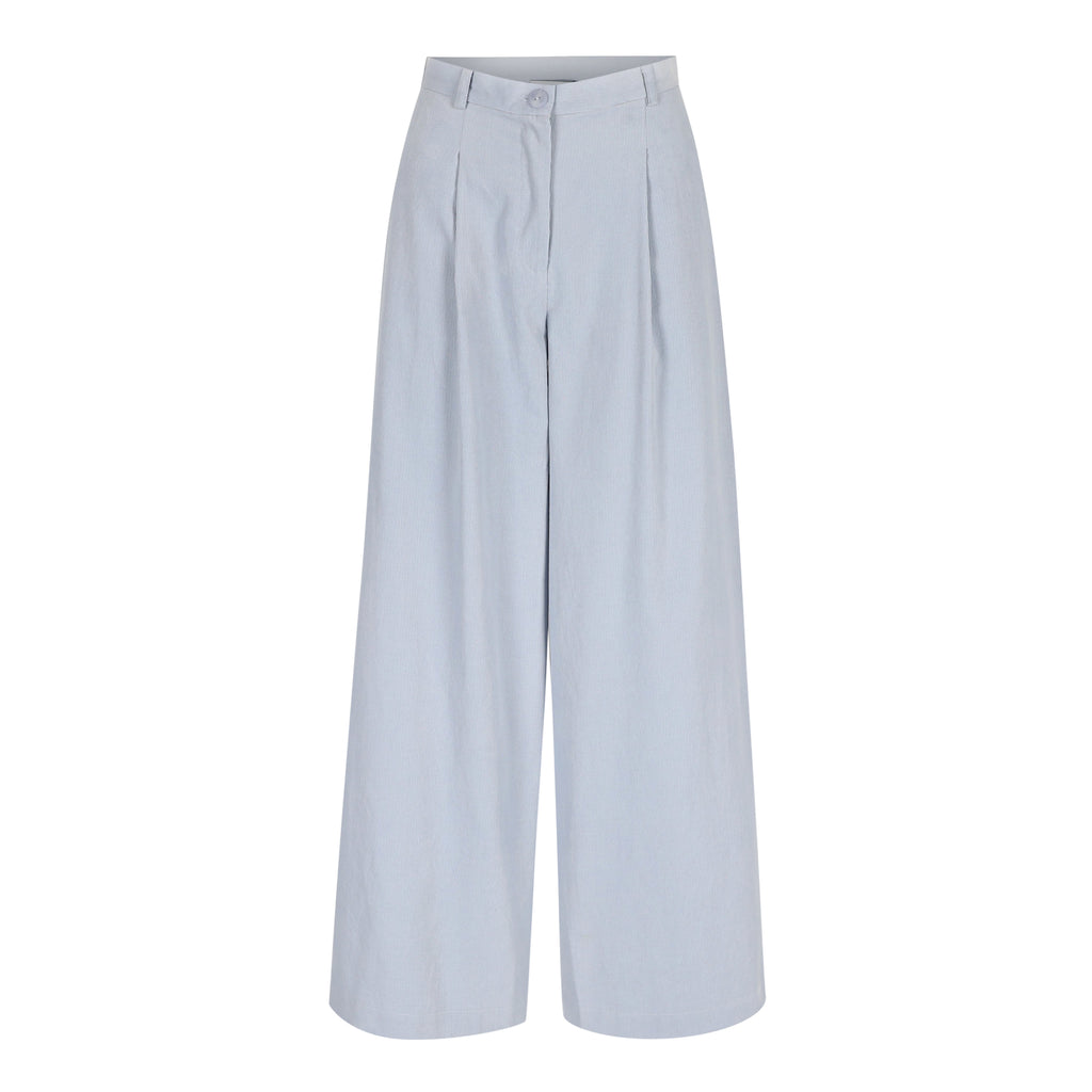 Clio pants Arctic Ice van Mon Col brengen serene elegantie naar jouw garderobe met een frisse arctic ice kleur en luxueuze babycorduroy textuur.
