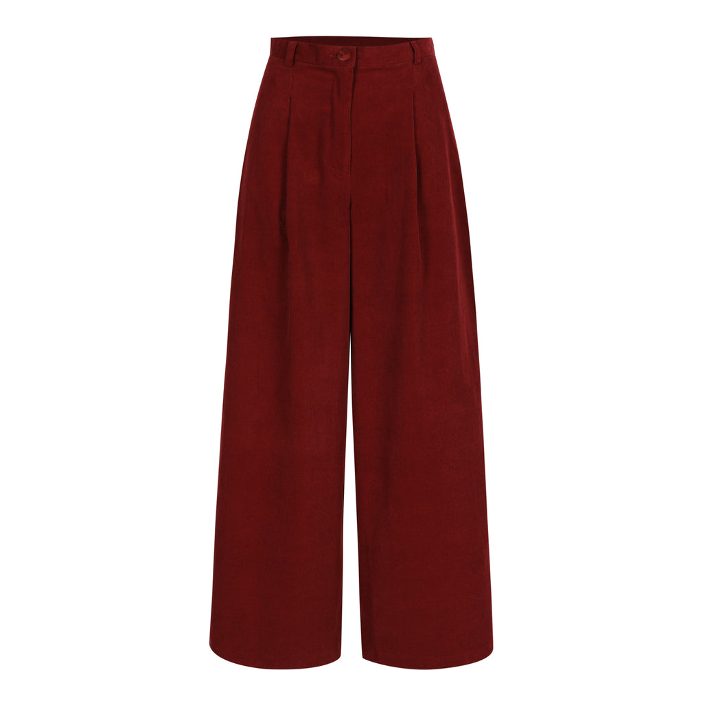 Clio pants Biking red van Mon Col brengen energieke elegantie naar jouw garderobe met een opvallende biking rode kleur en luxueuze babycorduroy textuur.