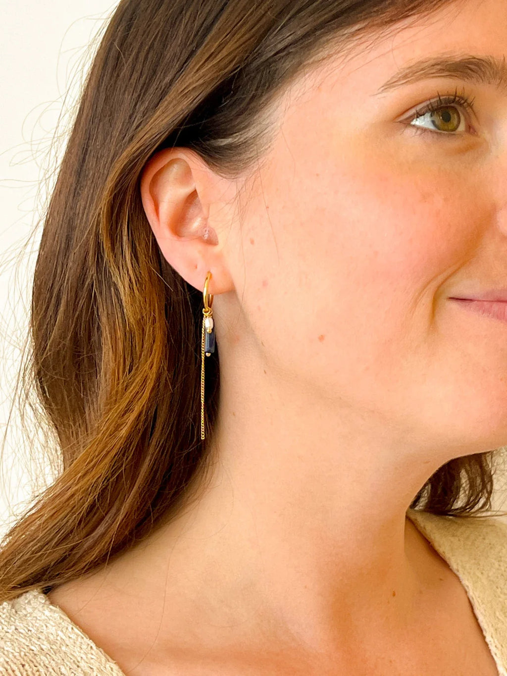 Deze oorbellen draag je helemaal hoe jij het wil. Met alle drie de hangertjes of een eigen combinatie. Leuke basics die je zelf aanpast aan de mood van jouw dag.