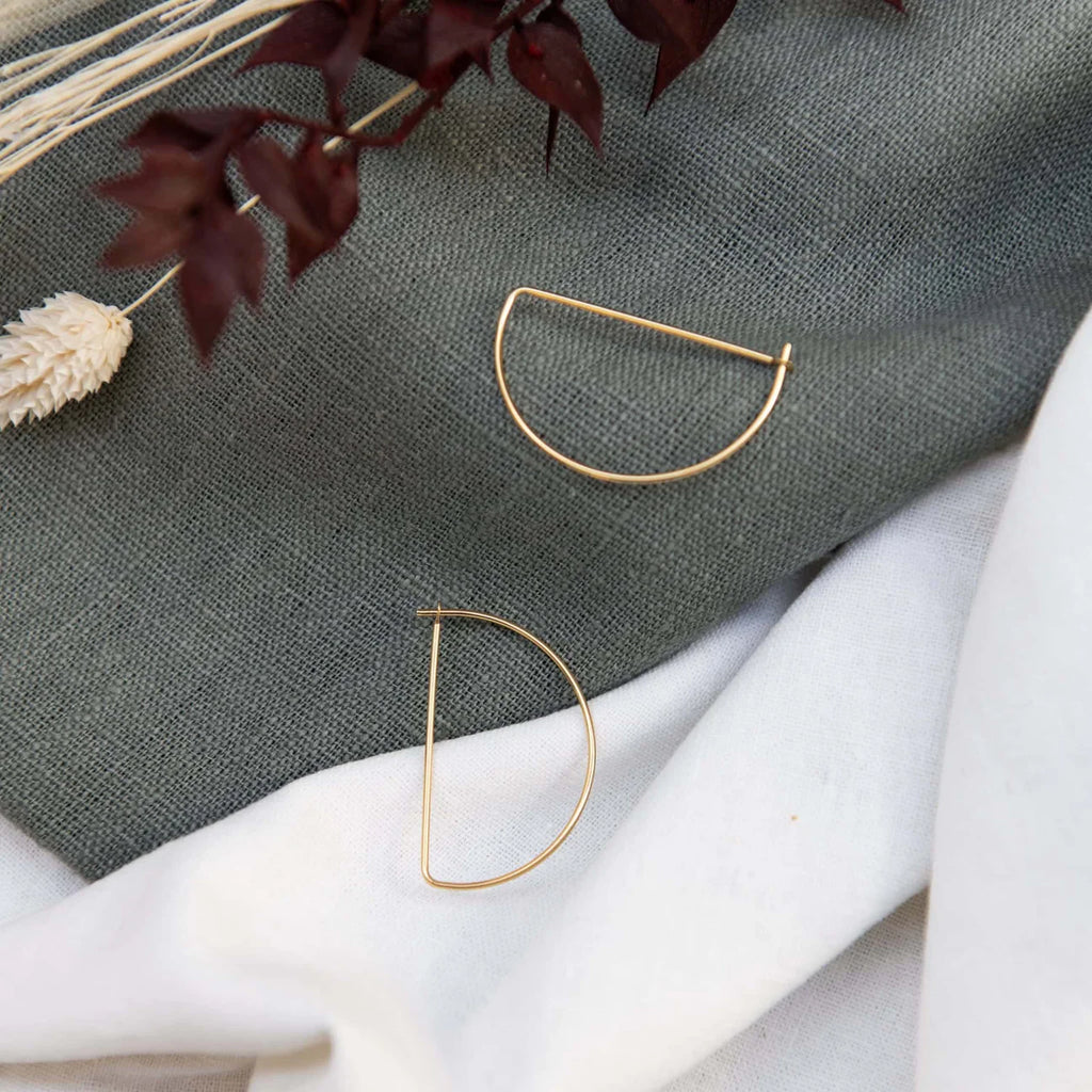 Strak, geometrisch en stijlvol. Deze geplooide draad in de vorm van een D. Hoe je ze draagt, kies je helemaal zelf.