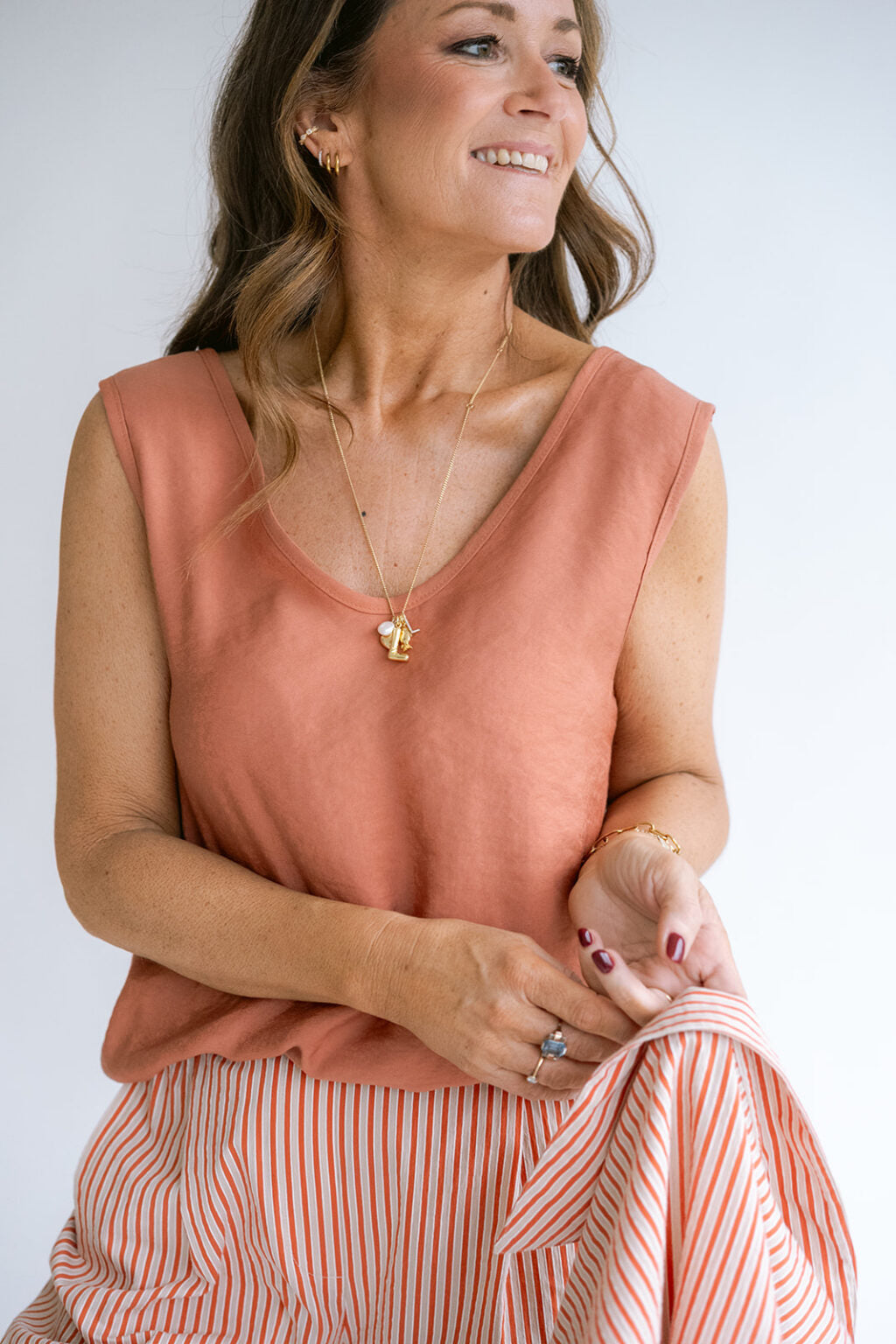 Soepelvallende top met brede schouderbandjes. Deze top is ideaal voor mooie zomerdagen. Of je kan deze in combinatie dragen met de Mette blouse in dezelfde stof als het wat frisser is, of onder je Marble blouse.