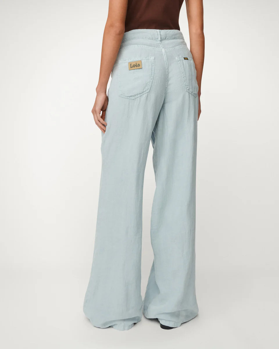Marlene jeans Bleach van Lois Jeans brengt retro elegantie naar jouw garderobe met een aansluitende hoge taille en wijd uitlopende pijpen. Beschikbaar in lengte 32.