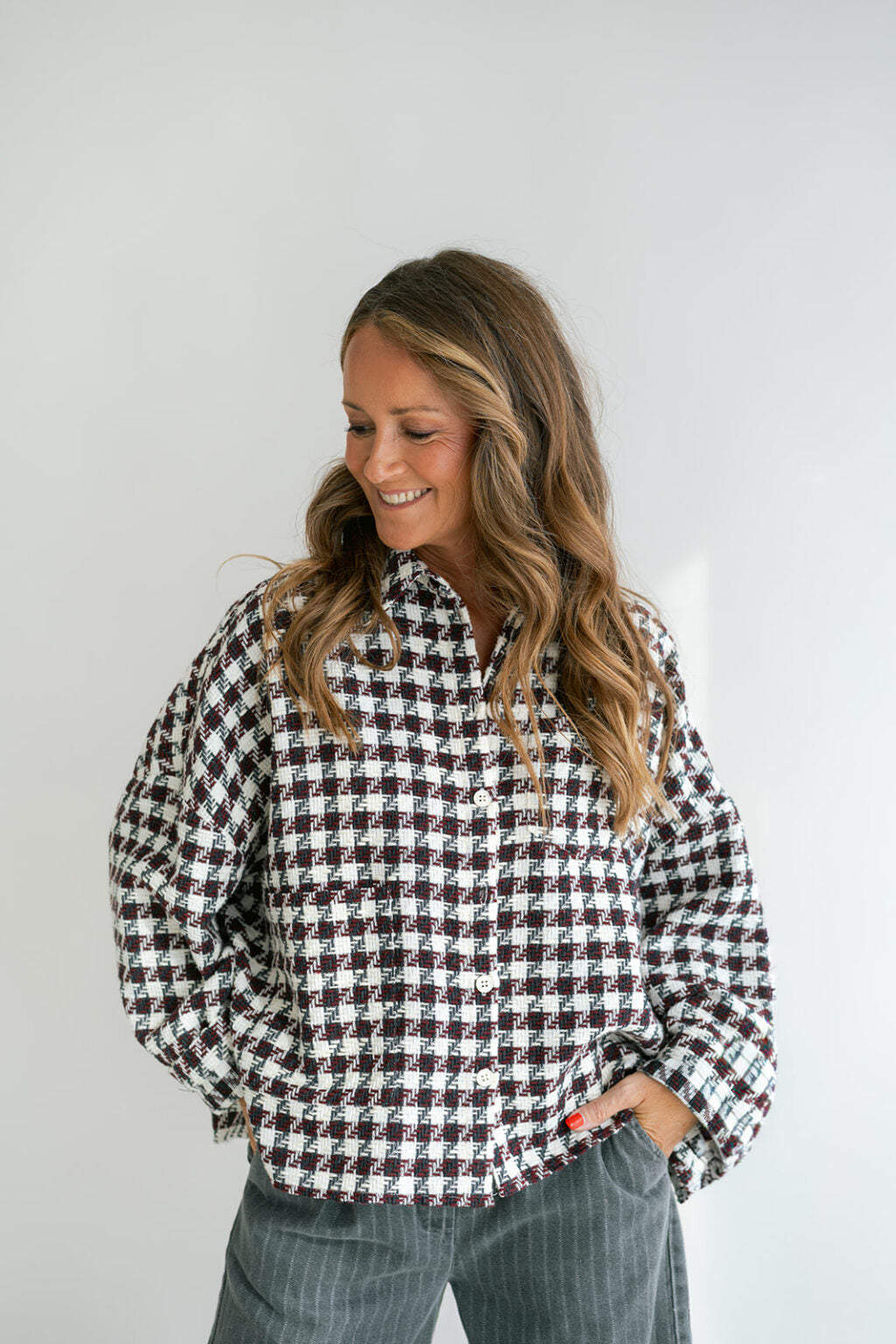 Deze Mon shacket draag je als een oversized brede blouse of als een jacket met een t-shirt onder voor een meer casual look.