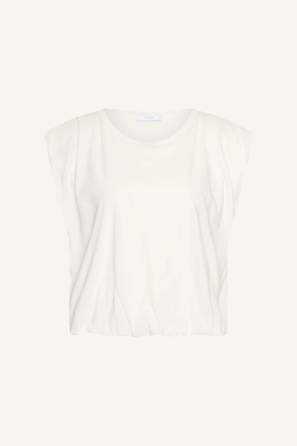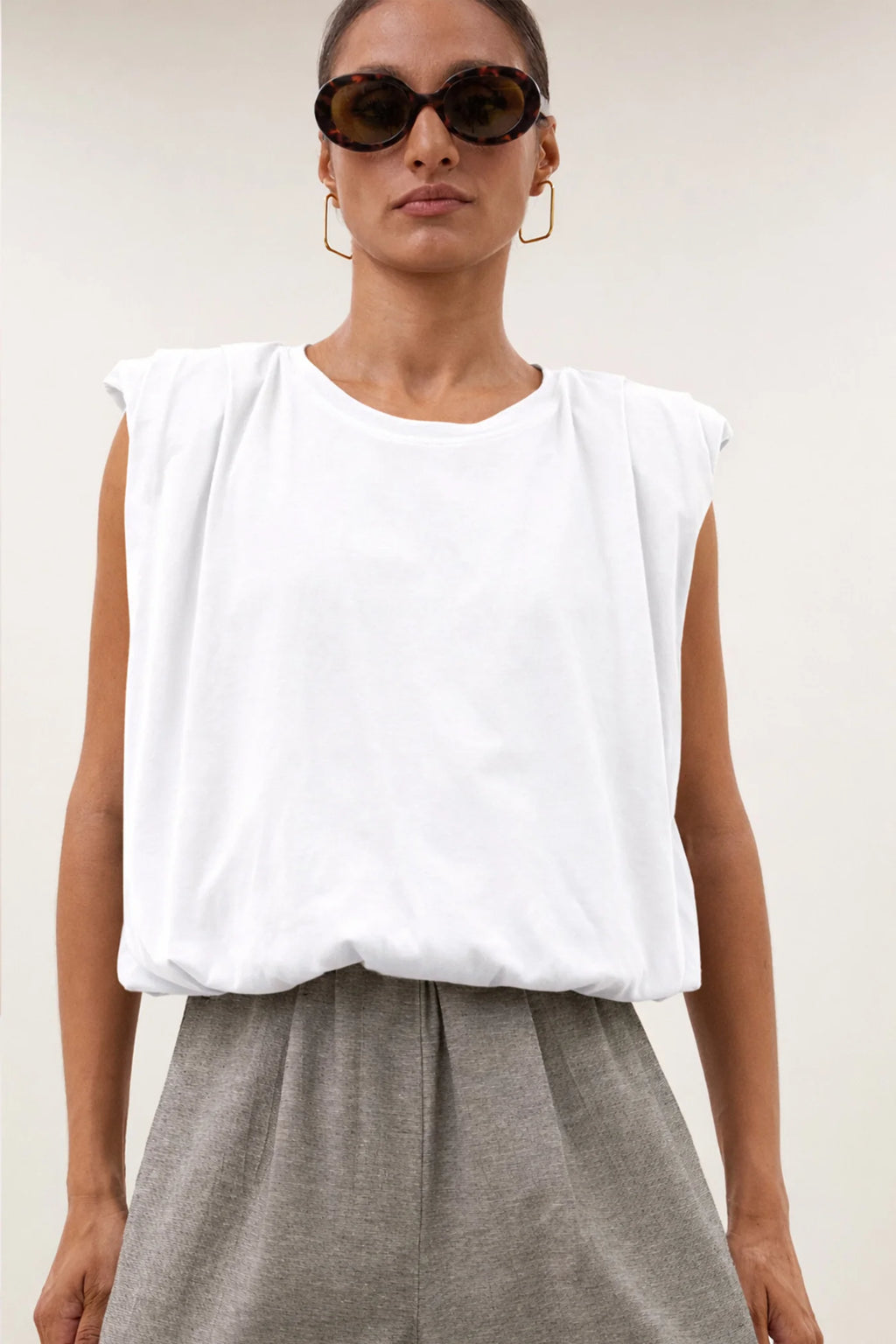 Nilou jersey top is een top met een comfortabele normale pasvorm. Deze mouwloze top valt op door subtiele geplooide details en een tijdloze ronde halslijn, perfect voor een casual chic look. De top heeft schoudervullingen. Ideaal om moeiteloos te combineren en je stijl een elegante touch te geven.