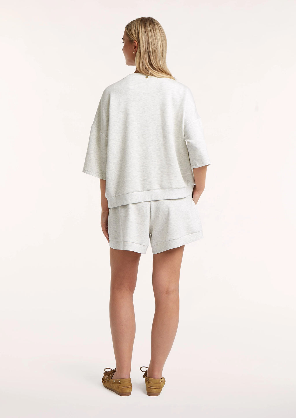 De Presley sweat in light grey melange is jouw ultieme comfortsweater — een drop shoulder sweater met driekwart mouw die casual en stijlvol tegelijk is.